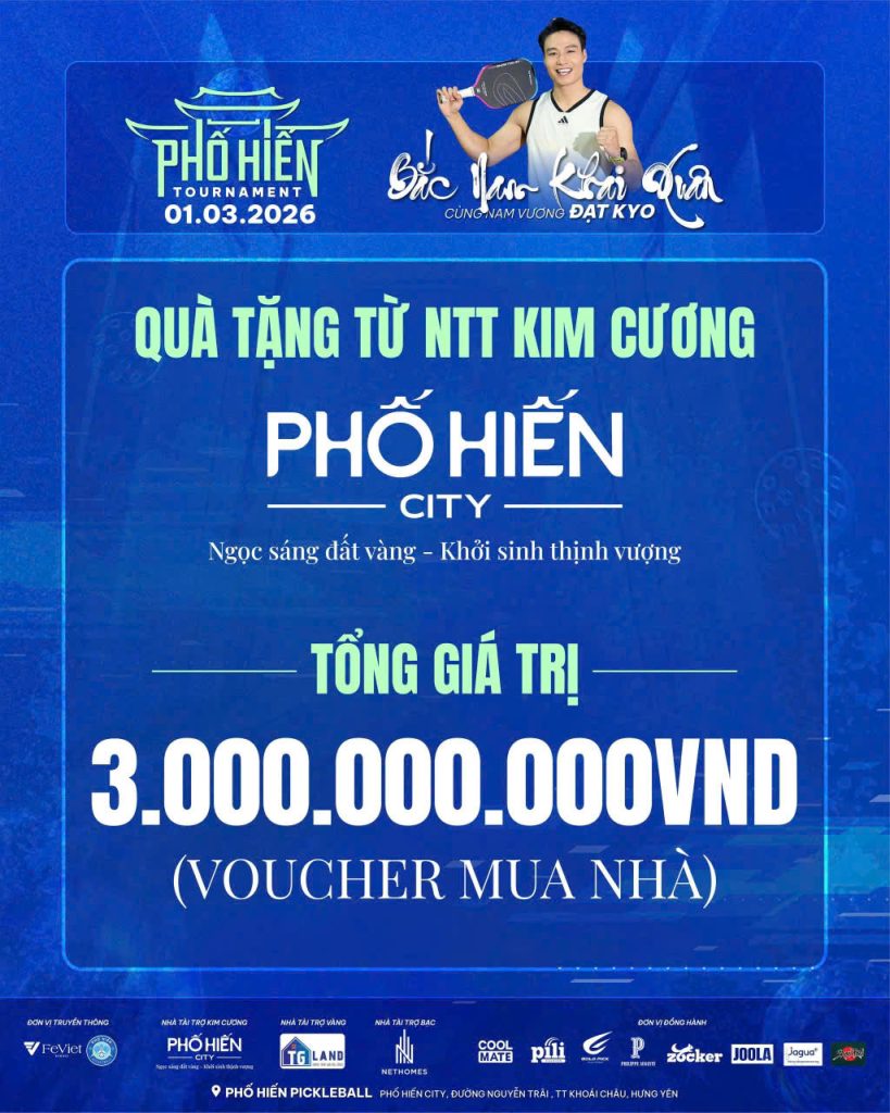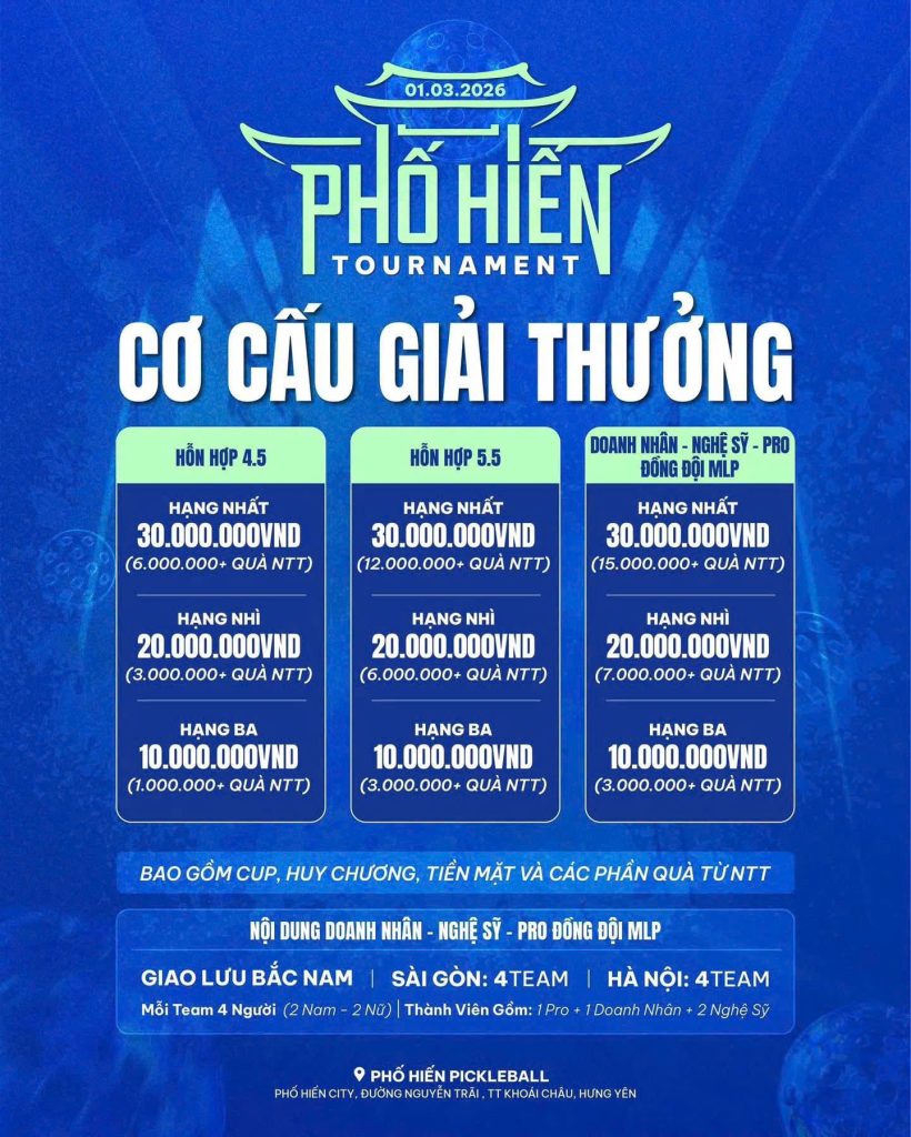 Địa điểm: Phố Hiến Pickleball – Dự án Phố Hiến City, đường Nguyễn Trãi, Khoái Châu, Hưng Yên